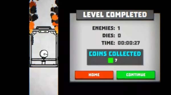 7、进入了电梯门以后就切换到了结算页面。会有死亡次数和通关使用时间的记录,同时也会将在关卡中吃到的绿色方块进行结算。