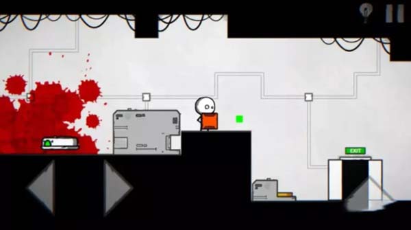 4、它就爆炸了,我明明都没有踩上去呀!重新开始游戏,这次停都不停留,直接就跳了过去!只是上一条命留下的鲜血很是刺眼。