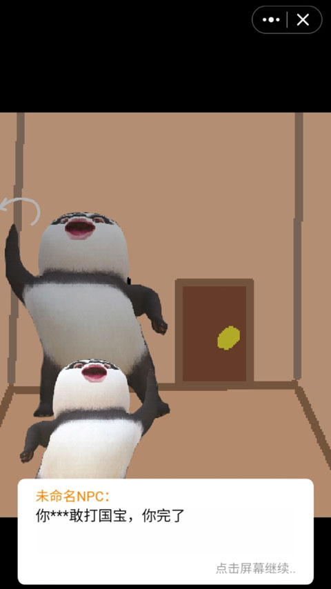 国宝惊魂手机版是由大神玩家国昊精心自制的一款恐怖向解谜冒险手游,同时也是快手上非常火爆的熊猫系列小游戏,我们可爱的国宝熊猫怎么会惊魂呢?相信有很多小伙伴都想一探究竟,小编向来是有求必应,本次就给大家带来了国宝惊魂手机版的最新版本,也就是国宝惊魂二代,其内一共包含选择题、剧情、恶搞以及当国宝等四大模式供玩家体验,不同模式不仅玩法不同,对应的结局也不一样,例如选择题模式中做出不同选择可以触发原谅或者国宝之死结局,而当国宝模式则需要通过简单的控制来争取存活的时间…值得一提的是,所有模式内均有达成结局的不同条件,还有黑化熊猫贴脸杀随时可能出现在不经意间,在蒙圈的同时吓你一跳,这也是吸引广大玩家的重要一点!