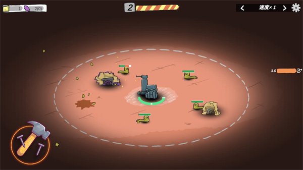 2、当怪物出现时,炮塔会自动攻击,你需要消灭入侵的怪物,保卫前哨基地;