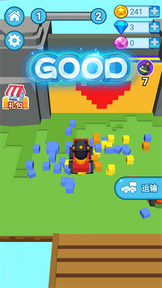 2、当墙体轰炸完后,您可以将工具的模式切换为运输,将方块资源来运输至出售地点进行出售。
