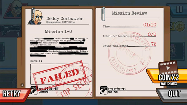 4、关卡结束之后,则可以获得奖励,血条没有则游戏结束。