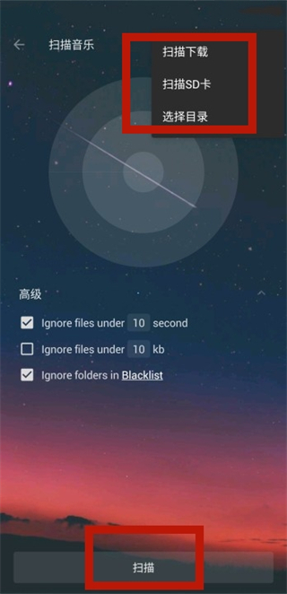 4、还可以选择扫描的指定位置,选择好后只需点击扫描即可将音乐添加至播放列表。