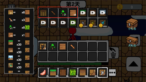 6、游戏中上方的方框是可以制作的道具,下方是玩家的背包;