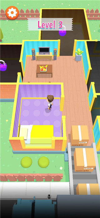 1、打开装有家具和电器的盒子,并将它们安排在房间里;2、完成关卡并解锁新房间:舒适的卧室、大客厅、现代化的厨房、专业的健身房或浴室;