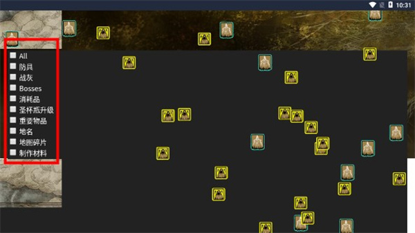 用起来也很简单,勾选你需要的功能,地图就会立刻显示相关信息。比如想找一把强力武器,勾选“武器”就能看到全游戏的武器分布;想刷材料,直接找对应的采集点就行。对于新手来说,这款工具简直是必备,而对于老玩家来说,也能省下不少探索时间。