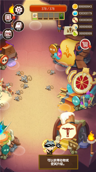 刷图中我推荐带复活面具,满级后可以使战死的动物59%的概率满血重生,队伍数量很容易维持在一个比较高的程度。同时打boss的时候,我都比较喜欢带傀儡面具,可以缩小动物体型,没有后排,围一圈堵着boss打。最终boss我也是使用这个面具通过的。