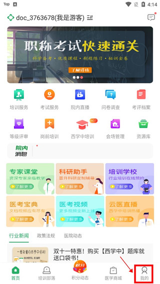 1、涵盖院内新闻公告,院内培训、院内考试,医考宝典、学术会、专家课堂、技能培训和医学商城等栏目;