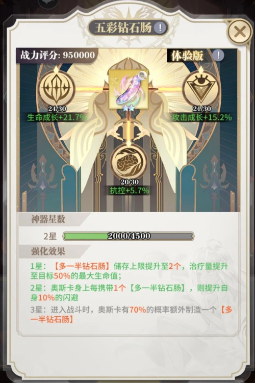 神器效果在众多神器里也是出众的一个,每一星都是质的提升。