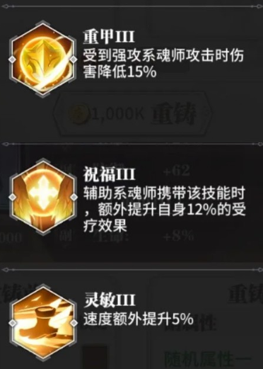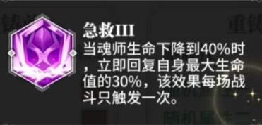 这个技能就比较奇特了,为已方单体恢复261%的血量,需要注意的是,如果被恢复的魂师血量在15%以下,那么这个技能无视系数加成,直接恢复该魂师一半的血条,还是很客观的。