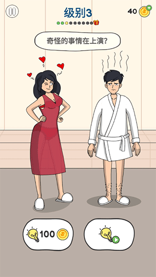 1、游戏规则很简单,玩家只需要在屏幕上绘制简单的线条或形状,让男孩接触女孩。2、中途可以使用道具来获得帮助,让女孩开心,关卡的答案因人而异。