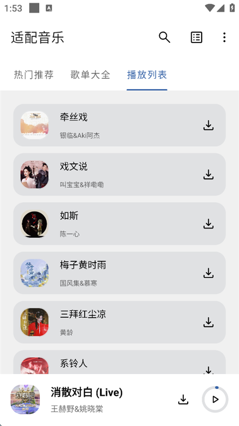适配音乐官方最新版是一款免费的手机听歌应用,它内置丰富曲库,涵盖多种音乐风格,不管是经典老歌,还是潮流热歌,又或是古风民谣等,用户都能在App中找到自己想听的风格曲目。适配音乐App还提供多个音乐榜单,包括热歌榜、新歌榜、短视频音乐排行榜以及影视金曲榜等,可为用户实时提供最新音乐排行信息。此外,适配音乐App不仅可以听歌,还可以下载歌曲,App提供无损、高品、标准等多音质下载,用户可按自己的需求下载相应音质音乐。