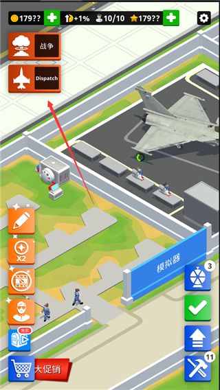 1、在闲置空军基地游戏中经营你的空军基地,帮助新兵们进行多种空军训练