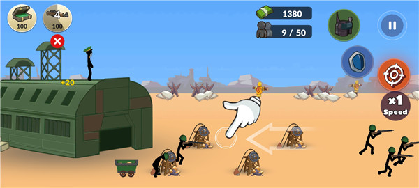 1、每种火柴人都有着特殊的能力,首先你要先了解你的士兵,才能发挥出各自的作用;2、游戏玩法,操作简单,需要的就是玩家合理的搭配自己的兵种;