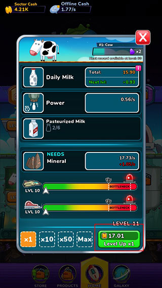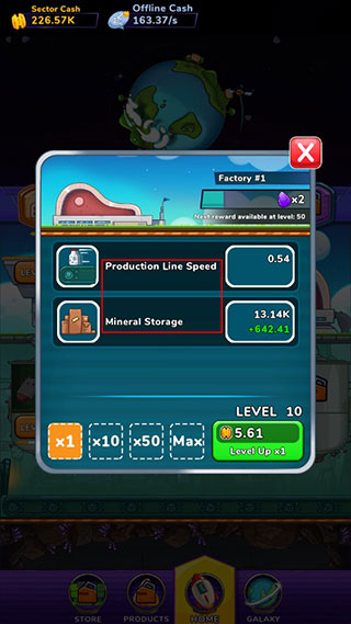 2、试着升级一下你的工厂让它的产出更多,点击图标,带箭头的是可升级的工厂。
