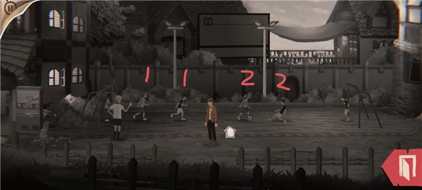 1、足球场上分为白队1号,黑队1号,白队2号,黑队2号和双方守门员。从主角(父亲)未干涉他们开始,如果让白2踢球射门,再让黑队守门员扑球,之后他会一脚射到1号附近,调整位置让黑1可以倒挂金钩,那么足球就会被踢进教学楼1楼。