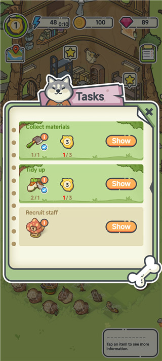 3、通过合并的玩法,来解锁更多的物品,来帮助动物开张杂货店;