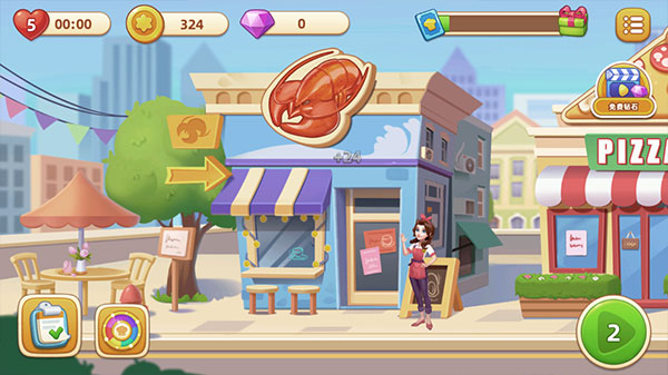 赚更多的钱来解锁新的餐厅,构筑自己的餐饮帝国吧!