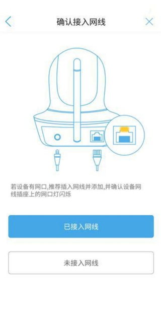 如果设备没有连接网线,点击“未接入网线”按钮,进入选择配网类型界面;