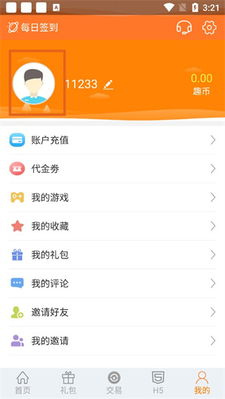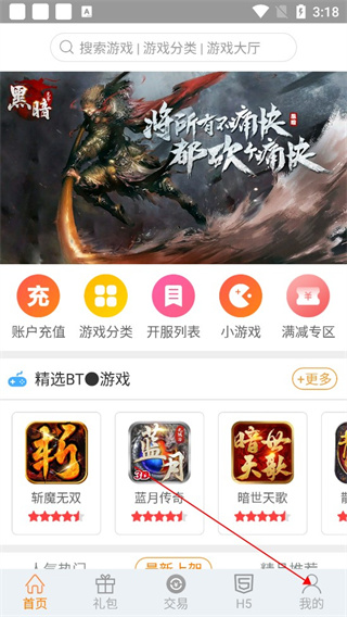 1、首先我们进入趣吧手游盒子app当中,点击“我的”;