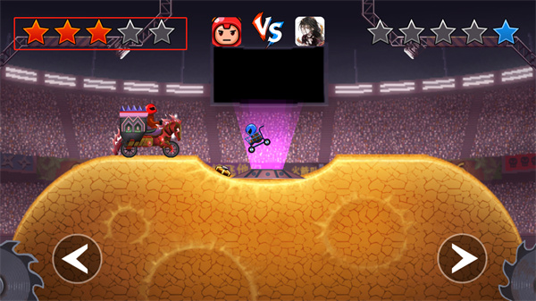 我车技贼6最新版是一款一对一竞技场格斗赛车游戏,游戏采用逼真的物理引擎打造,丰富的关卡和场景,简单的操作方式,玩家在游戏中可以选择上百辆赛车和道具加入挑战,选择不同的玩法模式完成任务,玩家需要灵活的使用地形和技巧击败你的对手赢得胜利。玩家在游戏中操作赛车进行激烈碰撞,只要赛车触碰到对方的头部就可以获得比赛胜利,1分钟一局,玩法火爆有趣,简直停不下来。我车技贼6游戏操作简单,玩家可以点击屏幕,再点击开始游戏消耗一张入场券进入游戏游玩,游戏中玩家可以点击游戏两边的按键来进行移动,玩家需要撞击对方的头部即可加一颗星,玩家需要先到达5颗即可赢得胜利,游戏胜利后游戏还会为玩家发放丰富的奖励。在游戏中玩家将与自己的战车在赛场上与随机匹配的对手展开无限的碰撞,在赛场上使用各种武器与技能将其他参赛选手全部淘汰出局成为比赛的冠军获取比赛的胜利。还在等什么,有兴趣的玩家快来下载我车技贼6游戏畅玩一番吧!