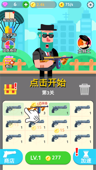 1、拥有100多个关卡,各种不同类型的武器一应俱全让你成为真正的特工,掌握射击技巧。2、远距离的射击有瞄准镜辅助,能在特工传奇选择地图、武器来玩耍。玩家点击屏幕射中敌人的头部。