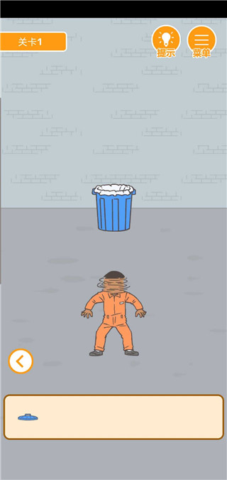 1、第一关,点击下方的箭头切换场景,点击盖子,拿到后将它拖动都垃圾桶上即可。