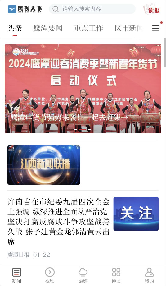 为受众提供鹰潭本地各类新闻资讯,实行网上平等交流、互动传播。