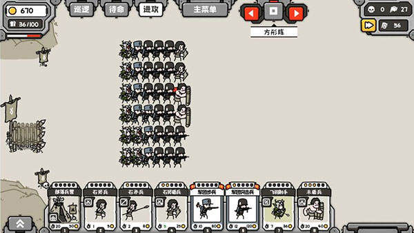 3、无尽模式,拒马加突击兵,就完事了。前期用10个吹箭兵和2个拒马苟一苟,第一个突击兵出来就无敌了。吹箭兵射程短,后期会死的一个不剩,剩下的全是突击兵(强迫症福音),这家伙的无限成长技能太bug了,永远不会缺伤害。拒马只加肉度就行了,突击兵自带击退,后期敌人很难打破拒马,所以召唤距离也不用升。三四排足够了。然后就是进攻-列阵-进攻-列阵无限循环。不过后期会很卡,尤其是突击兵扔炸弹的时候。