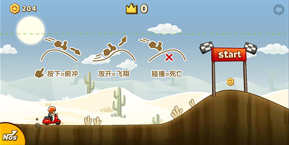 旋风赛车官方正版是一款经典的横屏赛车游戏,卡通的画风设计,炫酷的摩托车外观,玩家可以挑战极限,为赛车的声誉而战,获得高分,刷新好友排行榜,将对手甩在身后。游戏中控制你的摩托车开始冒险闯关,收集更多金币,解锁各种炫酷的摩托车,这里多达18种摩托赛车可自行选择,包括越野摩托、军用摩托、独角兽摩托、哈雷摩托、高速摩托等,用金币即可购买。玩家按住屏幕车子俯冲,松开手指则向上方飞行,随着飞行高度的提升,获得的成绩奖励也会逐步提高,需要注意的是,在飞行下落的过程中切忌撞到上坡或者谷底,否则游戏结束。此外,可以说在空中找准时机瞄准下坡路降落就是旋风赛车中唯一的难点,万一正好降落在山坡的最高点,则直接就开始下一局,所以需要小心操作,否则车子无法贴地行驶一样会撞到下一个山坡,感兴趣的朋友欢迎下载体验吧。