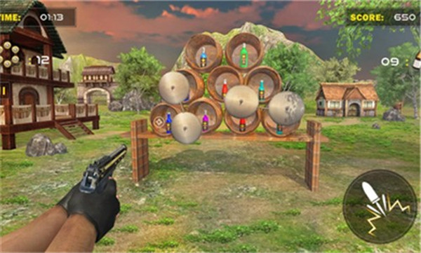 8、你需要在游戏中扮演角色并且体验不同的内容和画面,将不同的场景中的酒瓶射烂。