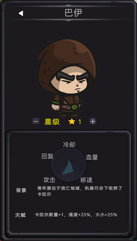 天赋:卡拉尔数量+1,速度+25%,大小+25%。