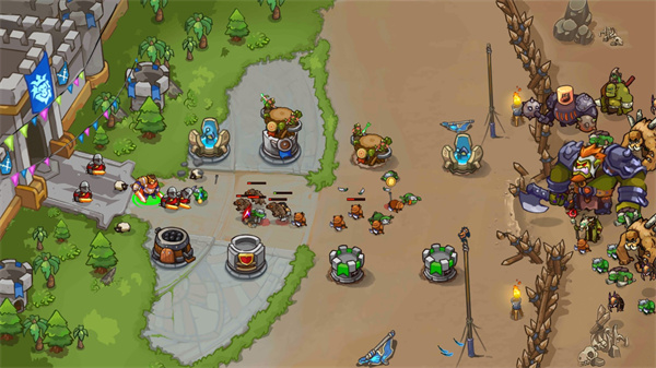 除了传统塔防的基础玩法,这里还有各种不同能力的英雄等你召唤,每位英雄的独特能力能够补充塔防力度的不足,并且英雄能够自动行动,借助兵营的步兵抵挡进攻,利用应能的高机动性挥砍敌人,释放技能,成功抵御魔兽军队入侵。