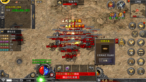 分为红色神装、热血装备、传世装备、至尊装备。红色神装四角色都可以佩戴,击杀不同转生等级的Boss可以随机获得对应转生等级装备(最高)和不同数量神装碎片,但即使有归属奖励5倍爆率获得整件装备的概率还是极低,因此要多注意Boss的刷新时间还有次数恢复,对于开服的神装礼包性价比太低不建议购买。