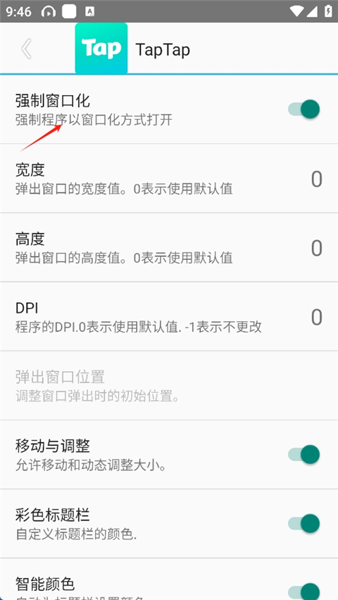 2、如果开启"强制窗口", Apps从任何地方打开都是窗口化, 否则只有通过悬浮按钮打开才是窗口化。
