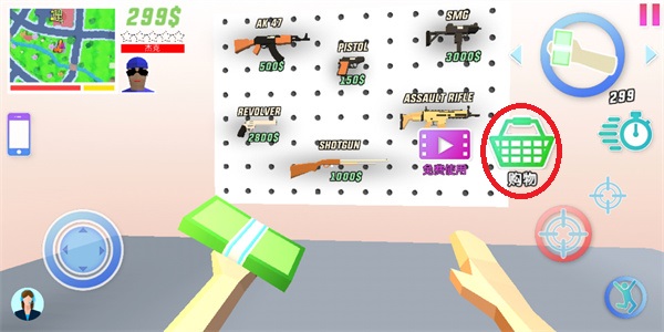 移动轮盘是用来控制玩家进行移动的主要按键,可以说没有它你将寸步难行;在地图的右边显示着我们现在的血量以及金钱,金钱是用来购买道具以及在游戏内游玩的主要物品,玩家尽量多多收集,屏幕的右边的按钮都是主要以交互为主的,例如攻击瞄准等功能;