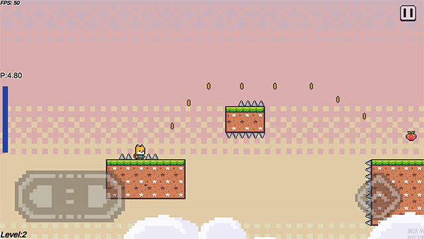 2、长按跳跃键可以喷气,让小狐狸飞起来,玩家可以控制好方向收集上方的金币,收集到草莓就可以通过关卡。