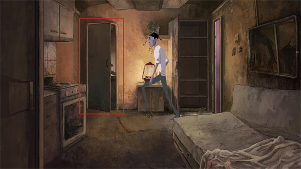 17、回到酒吧,和吧台的酒保对话。其中有选项是问酒保有什么东西,主人公最后拿香烟和威士忌换了一盒食物。