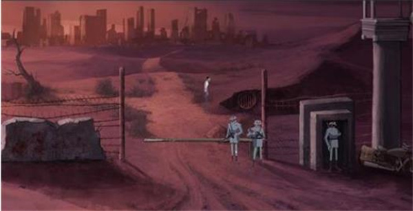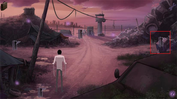 4、通过右侧的门离开房间。到了外面才发现,刚才是处于一辆车的车厢中。我们先和火炉右边无家可归的流浪汉聊天,主人公刚醒来,再加上失忆问题很多。
