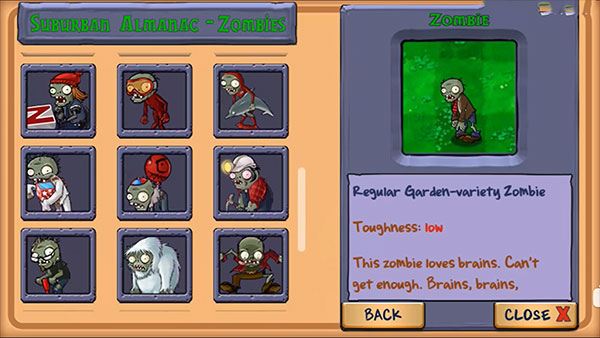 4、还有僵尸的图鉴,知己知彼百战百胜,每一个僵尸都有自己的风格特色。