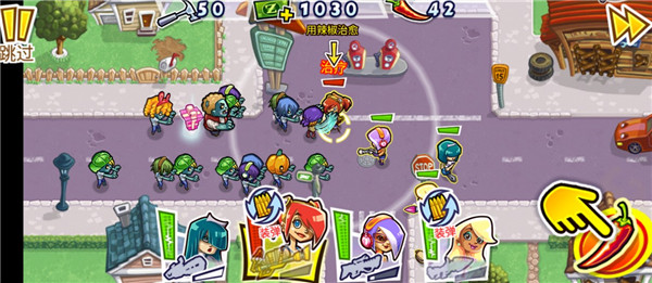 4、最右边的辣椒道具我们可以投喂角色,可以在一定时间内增强角色的攻击力,可以在尸潮来临时使用