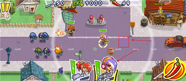 2、使用火焰喷射器的这个角色,玩家在使用糖果对其进行升级时,她所有的技能都可以增加她的移动速度,并且还可以使她的武器伤害增加,这样的话在前进的时候玩家们就可以更加轻松的对僵尸们造成更多的伤害了,消灭路障的奖励也会增加