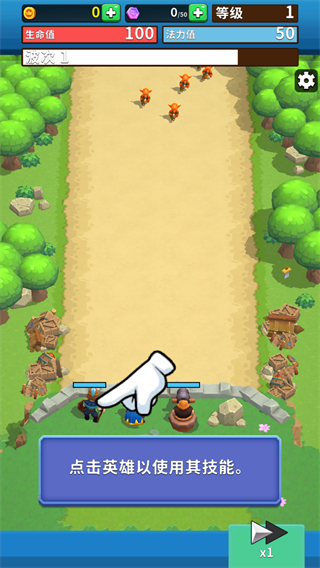 2、游戏玩法也很简单,在敌人发起进攻前需要完成阵容布局,在有限的生命值里守护自己城堡,点击任一英雄即可使用其技能,每一种英雄的技能都不相同。