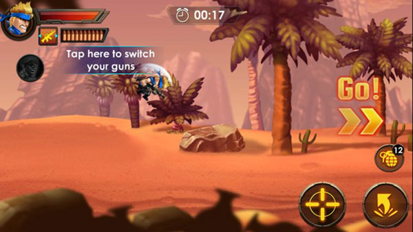 新手攻略主要是熟悉基本操作:滑动方向键控制移动,点击跳跃躲避攻击,切换武器打敌人,击杀所有目标就能胜利。游戏亮点还有新任务模式、MS2车辆、对战坦克和砍刀,敌人多,武器设计经典,整体体验很带感。