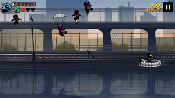 火柴人不能死是一款以火柴人为主题的动作射击类手机游戏,在这里玩家将扮演的是一位火柴人角色,但由于某种原因你触犯了敌人利益,因此你开着飞艇在河道里进行逃命,但是有那么容易逃掉吗?其中究竟发生了什么才导致你被追杀?这一切都得等玩家自己去游戏里面探索啦!同时,火柴人不能死手游的玩法也十分的简单,只需要玩家不断的滑动屏幕躲避敌人攻击的同时攻击敌方即可。在武器装备上游戏提供了众多强有力的武器道具帮助玩家轻松的活下去,而你能在这些道具的帮助下活下来吗?对这款游戏感兴趣的朋友,一定不要错过,欢迎大家免费下载体验。
