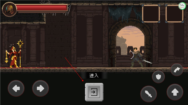 1、进入游戏,左边控制方向,右边分为攻击、防御、跳跃、滚动。