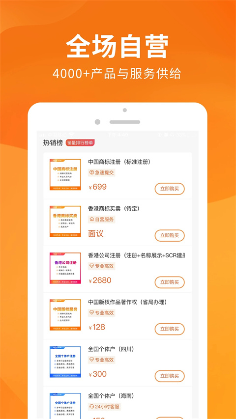 - 一站式企业服务:涵盖工商财税、知识产权等2000多种企业服务。