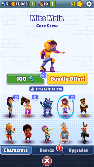 操作方面,左右划屏控制移动,上划跳跃,下划蹲曲。游戏里还能买技能和道具,像加速、磁铁、滑板等。解锁角色有两种方式:用钱或者抽神秘箱子。玩的时候不仅要躲避障碍物,还要灵活使用道具,比如加速道具能让你跑得更快,滑板可以多一条命。