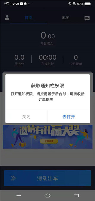 4、然后用户们就可以直接滑动出车,进行接单啦;