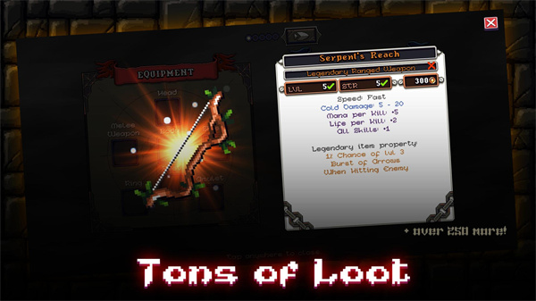 2、250个不同的装备和道具都会掉落,丰富的武器组合都能选择,让你的战斗更精彩。